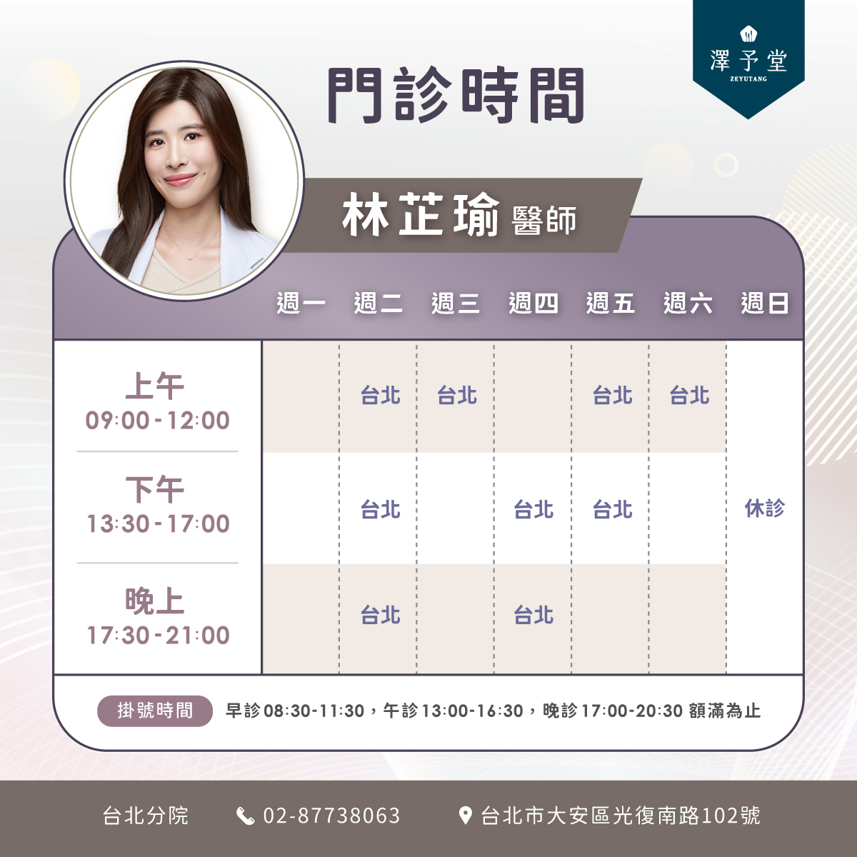 即將在澤予堂中醫體系台北分院看診 👏👏