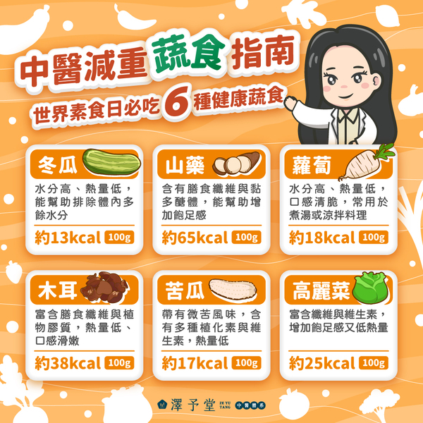 每年的 11 月 25 日是「世界素食日」,不論你是長期吃素、間歇性蔬食,或只是希望讓身體稍微休息一下,這一天都是重新檢視飲食習慣、調整餐桌內容的好時機。蔬食不僅種類多變、料理方式豐富,從中醫飲食觀點來看,許多蔬菜的性質平和、熱量低,能為日常飲食帶來更清爽的感受,也能減少身體的負擔,讓飲食更接近自然且舒適。