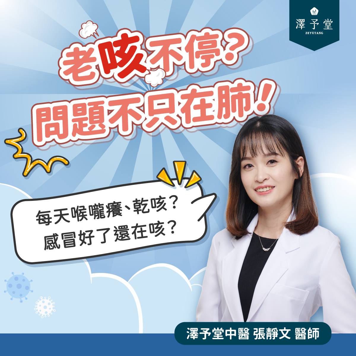 久咳不癒的警訊——「問題不只在肺!」你是否曾有這樣的經驗:感冒症狀都已退去,唯獨咳嗽卻像個頑固的跟屁蟲,持續糾纏兩週甚至更久?每天喉嚨乾癢、晚上咳不停,甚至需要不斷清喉嚨?許多人以為只是「卡痰」或「喉嚨發炎」,隨意服用止咳藥或抗生素,結果症狀反覆,一拖再拖,反而形成了中醫所稱的「久咳體質」。澤予堂中醫張靜文醫師提醒:「老咳不停,問題不只在肺!」 長期的咳嗽不僅帶來生活上的不便,更是身體在發出警訊,提醒你「需要調理了!」久咳不癒往往暗示著身體內部的失衡,可能是消化系統、情緒壓力、或是體質虛弱等多重因素所致。